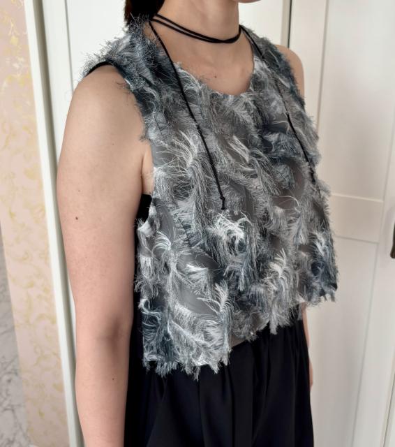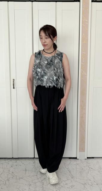 こちらのコーディネート、ノースリーブでも黒をベースにしているので、シックなイメージに仕上がってると思います。涼しさもキープしつつ秋らしさも感じる、一石二鳥コーデ!