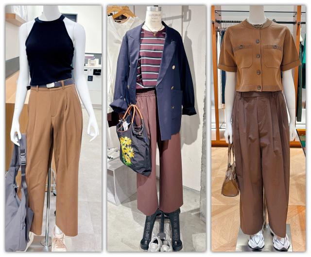 GUでもタックワイドパンツやバックなど、取り入れやすいアイテムでブラウンが豊富に揃っています。ブラウンは女性らしい印象を作りやすいので、顔タイプに曲線要素があったり、女性らしいファッションが好きな方は特におすすめの色。