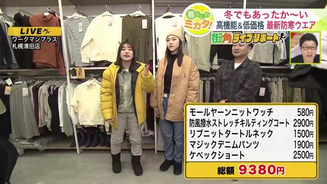また、店員の女性が全身に身に着ているワークマンの5点は、合計9,380円とさらに低価格。