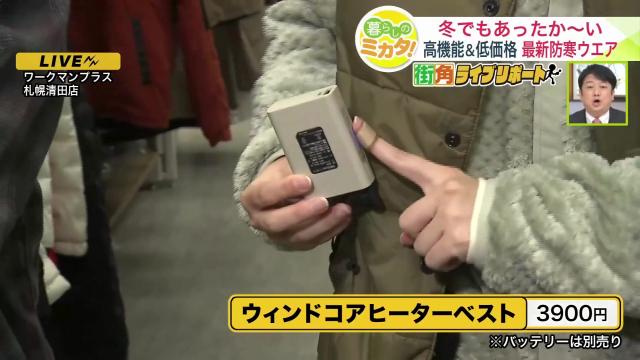 続いて『ウィンドコアヒーターベスト 3,900円(税込)』は、電熱ヒーターを内蔵したベスト。※バッテリーは別売り
