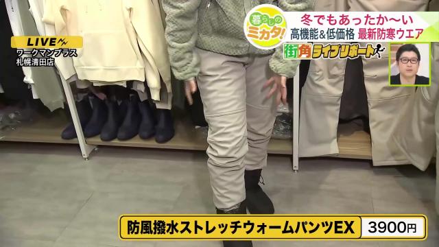 『防風撥水ストレッチウォームパンツEX 3,900円(税込)』は、生地が分厚く暖かいのが特徴のおすすめ商品です。