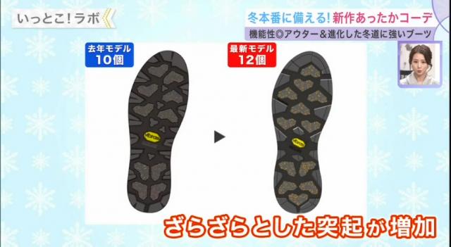 ツルツル路面でも滑らないという今年の新モデルは、靴底が進化しているんだそうですよ。