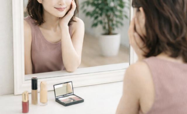 シェーディングは合わせ鏡でフェイスラインをチェック。ラメは太陽光だと見えにくいので多めにつけがち。電球色でラメ具合いをチェックすることも大事です。