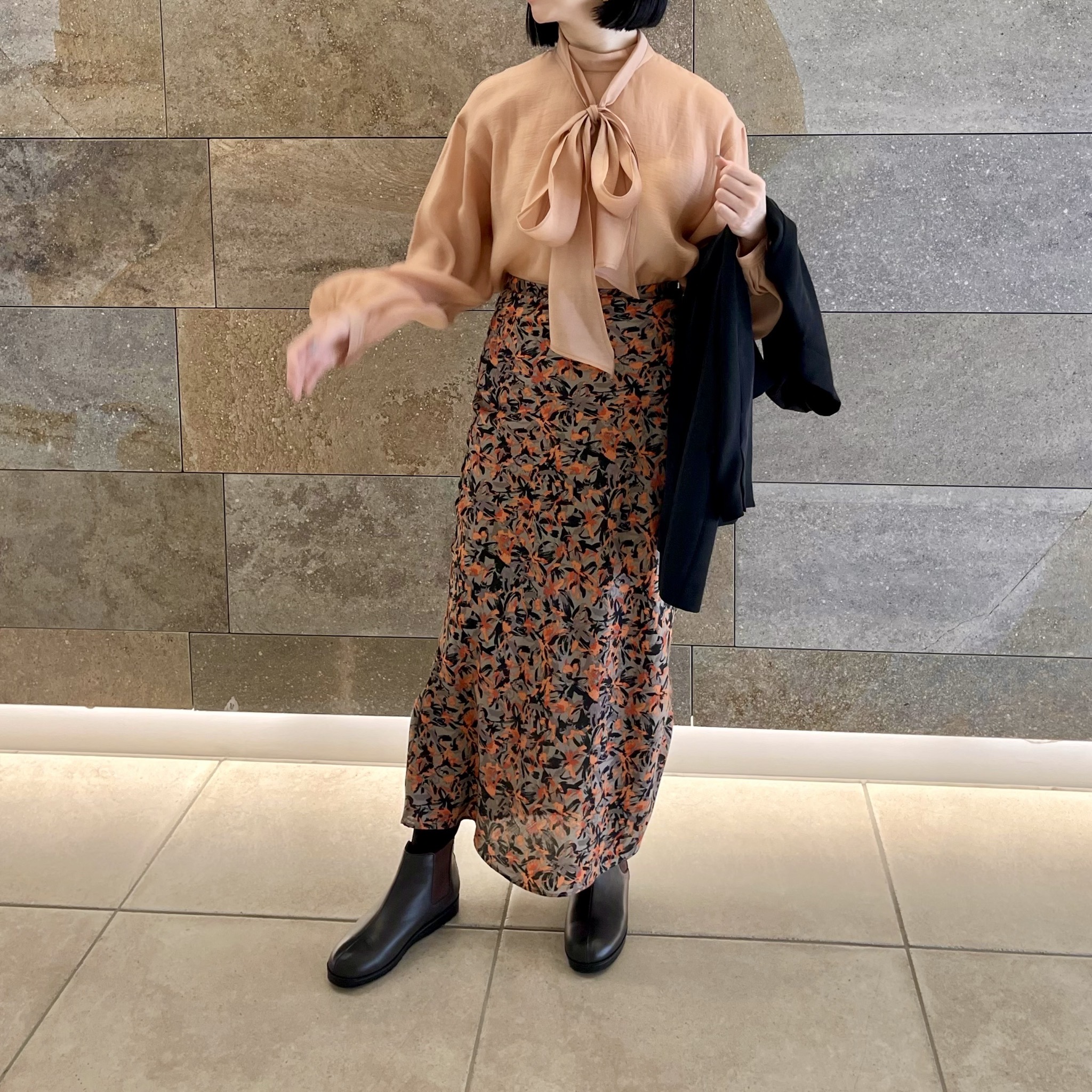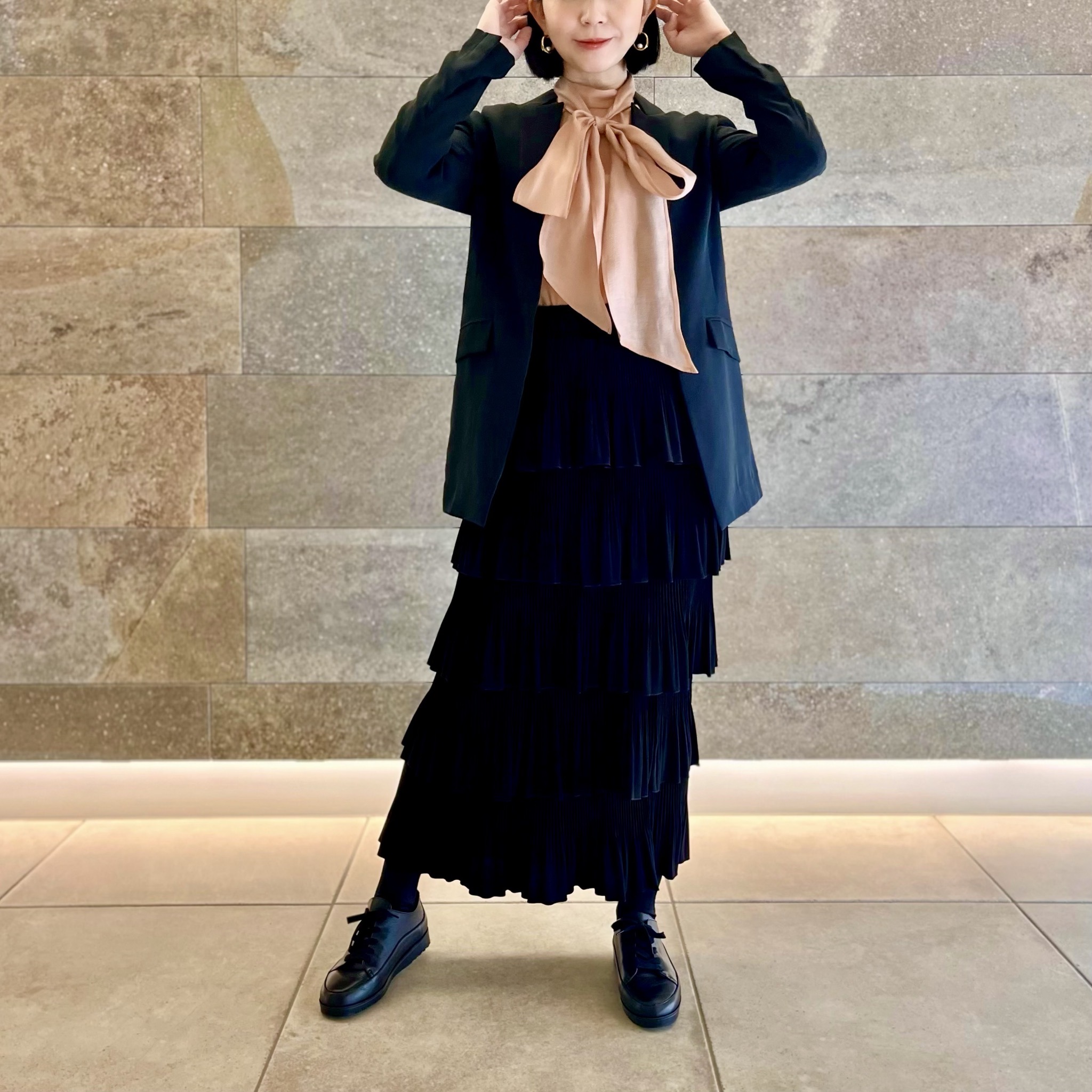 スカートも黒で統一するとセットアップ感が出て式典でも使える気がします。