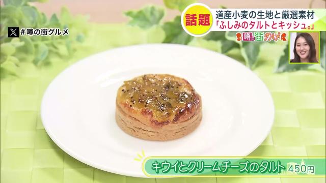 「キウイとクリームチーズのタルト(450円)」は、キラキラ・ツヤツヤでおいしそう!