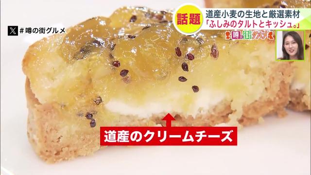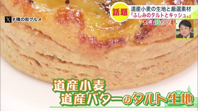 フランス仕込みの製法で、道産小麦とバターで作ったタルト生地とフルーツを一緒に焼き込んでいるので、生地と食材との一体感が生まれ、そこにザクザクとした食感が加わります。