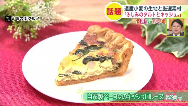 キッシュの一番人気は、自家製のベーコン、タマネギ、ホウレンソウが入った「自家製ベーコンのキッシュロレーヌ(580円)」。