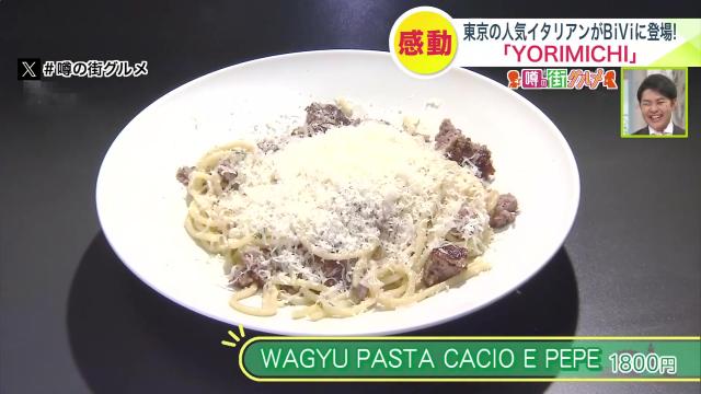 完成したのがコチラ。「WAGYU PASTA CACIO E PEPE 1800円」。
