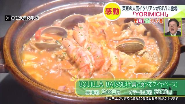 赤エビやタラなどの魚介や旬の野菜がたっぷりと入った「BOUILLA BAISSE(土鍋で食べるブイヤベース)赤海老2480円 /オマール海老 3300円」も看板メニューのひとつ。