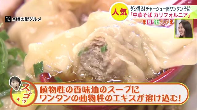 トッピングのワンタンは、植物性の香味油のスープとも相性抜群。