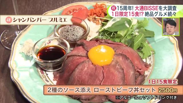 ススキノ発祥の「シャンパンバー プルミエ」(4階)では人気の自家製ローストビーフが楽しめる丼セットが1日15食限定。