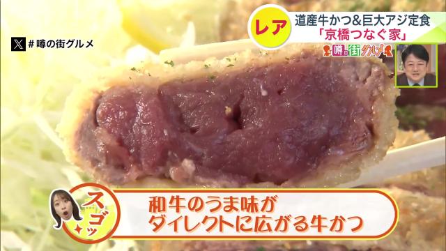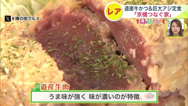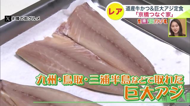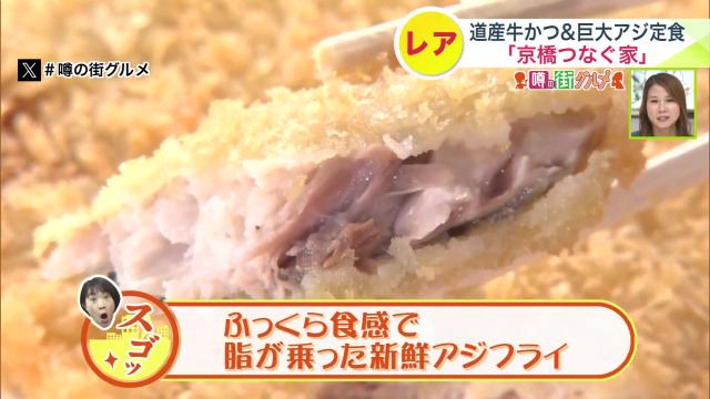 宍戸さんが「本当に食べて感動したんです。こんなうまいんだって」と話すアジフライは、ふっくら食感で脂がのってとろんとしていて、独特のうま味があっておいしい!