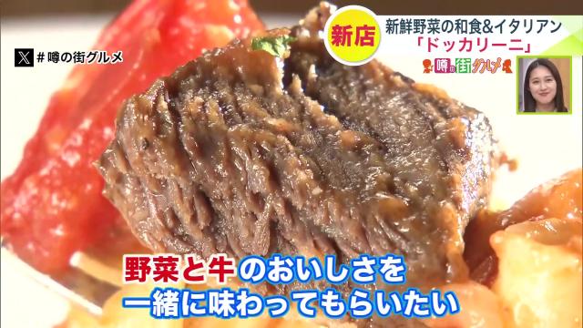 圧力鍋で仕上げた富良野和牛のホホ肉は、口の中でホロホロほぐれるやわらか食感。
