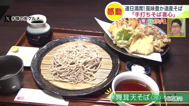 『舞茸天そば(冷) 1,620円(税込)』では、毎朝打つ幌加内町産のそばや、大きくて香り豊かな舞茸の天ぷらが楽しめます。