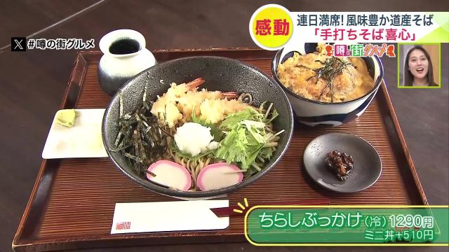 喜心では『ちらしぶっかけ(冷) 1,290円(税込)』など、希少な“韃靼(だったん)そば”を使用したメニューも人気です。