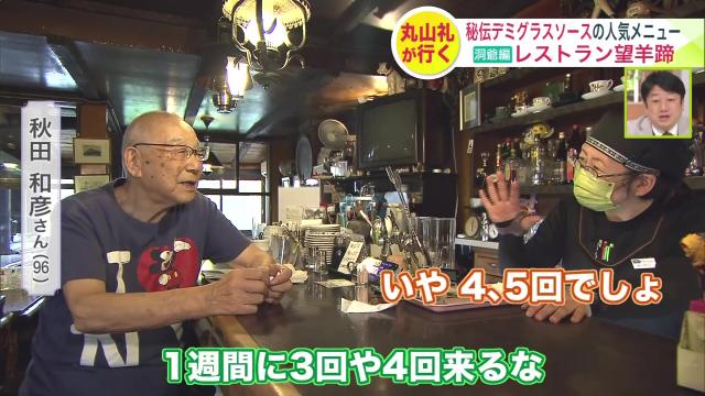 70年以上通っているという常連、96歳の秋田さん。「1週間に3、4回?」「いや4、5回来る」という秋田さんのオススメもポークチャップだそうですよ。