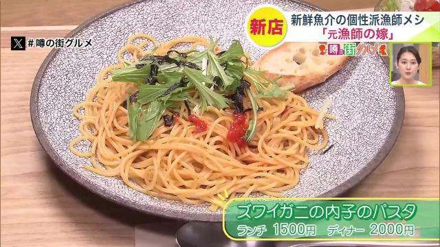「ズワイガニの内子のパスタ ランチ1500円 ディナー2000円」は、うま味がギュッと凝縮していておいしい!