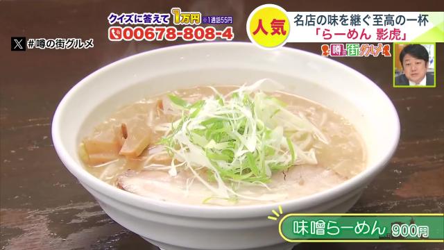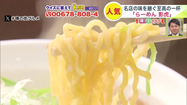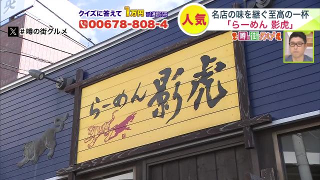 虎が描かれた真っ赤な看板が目を引くのは「らーめん 影虎」。