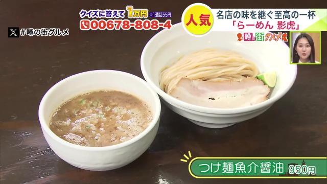 本店にはないオリジナル魚介スープの人気メニューが「つけ麺魚介醤油 950円」。