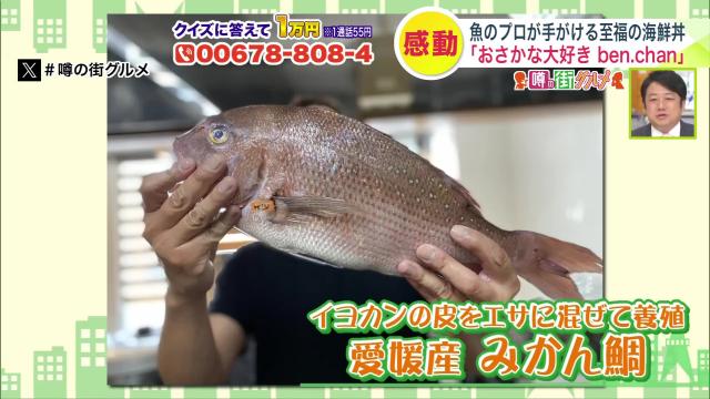 イヨカンの皮をエサに混ぜて養殖している愛媛産のみかん鯛の切り身は、ほんのり柑橘系の風味が香り、臭みがないのが特徴です。