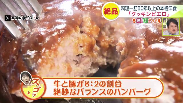 牛と豚の割合が8:2の合い挽き肉を使用し、脂のうまみとしっとり感のバランスがよいハンバーグです。