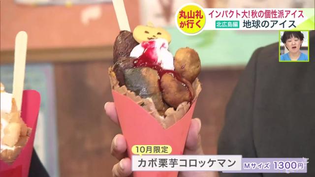 10月限定の『カボ栗芋コロッケマン Mサイズ 1,300円(税込)』は、月替わりのソフトクリーム。