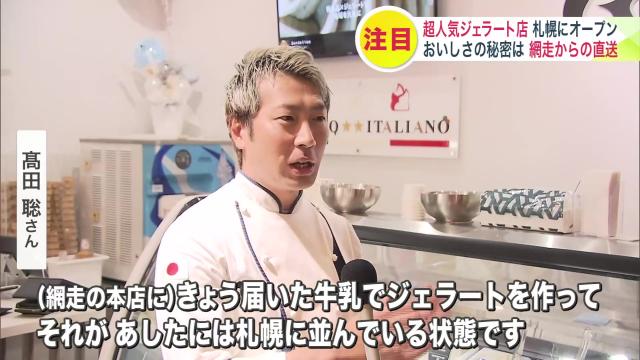 「(網走の本店に)今日届いた牛乳でジェラートを作って、それが明日には札幌の店頭に並ぶ。すごくフレッシュなものを揃えるようにしています」と話すのは、職人の高田聡さんです。