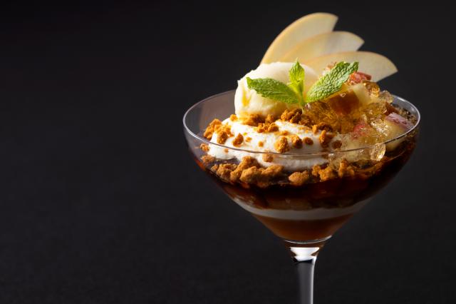 別館1階の「ラウンジ・バー オールドサルーン1934」では、夜のデザートとして「りんごとキャラメルナッツのパフェ・タタン風」が登場。