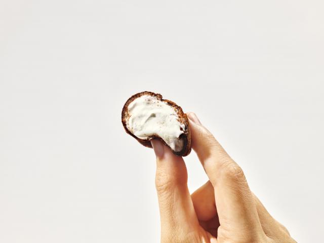 溶けたスノーボールをつまむと、ふわっふわで柔らかそうです。