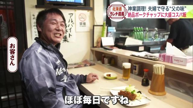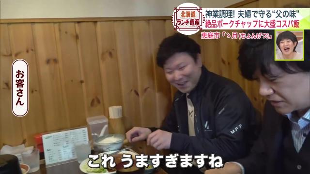 取材日にポークチャップ定食を食べていたお客さんも、「これうますぎますね」と興奮気味に頬張ります。
