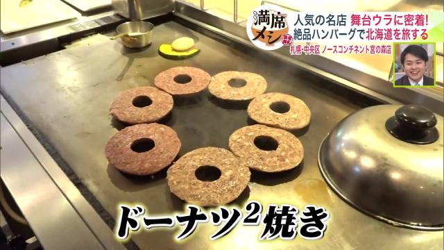特注の型で形成しているというドーナツ型のハンバーグは、均等に火が入るので、焼き時間の短縮にもなるのだとか。