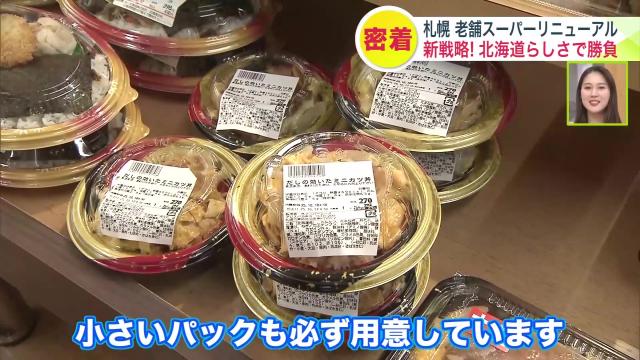 「高齢者が多いので、小さいパックも必ず用意しています。『大きいのじゃ食べきれない』というお客様からの声も多く、1人分、もしくは半分ぐらいの量が欲しいということもよく言われることが多い」と工藤店長。