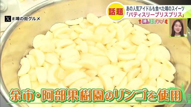 酸味を少し感じるリンゴは、余市町・阿部果樹園のリンゴを使用。丁寧にたき上げ、クリームと程良いバランスです。