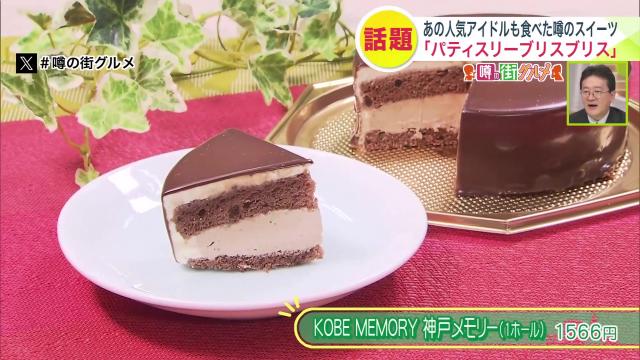 ココアのスポンジにガナッシュ(チョコレートクリーム)をかけた「KOBE MEMORY 神戸メモリー(ホール)」(1566円)も人気の一品。