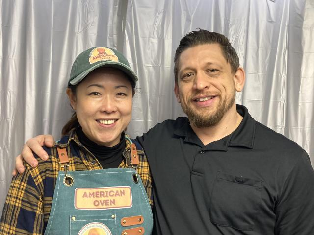 今年の9月にAmerican Ovenをオープンしたオーナーのスキラス・リチャードさんと奥様の佳奈さん。