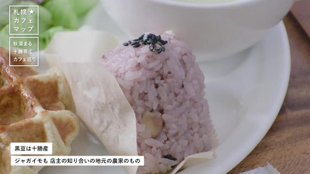 豆ごはんおにぎりには、十勝産のホクホクの黒豆がたっぷり。十勝地方は国内有数の豆の産地で、黒豆も特産品の1つです。