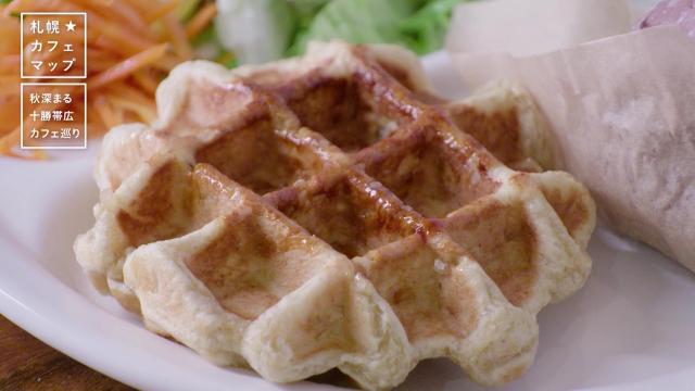 十勝産のてんさい糖を使用した天然酵母ワッフルは甘さ控えめで、食事にも向いています。