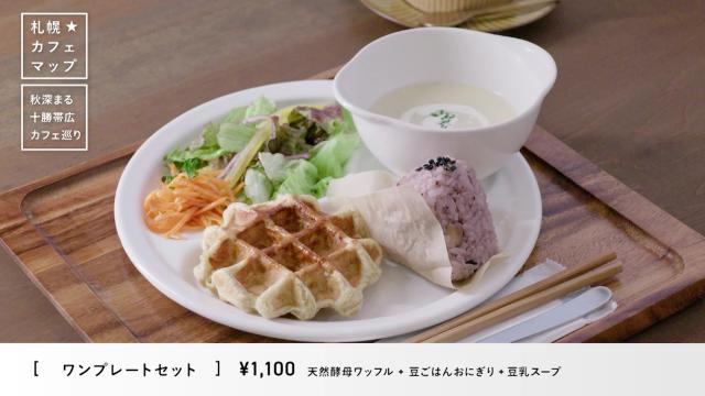 おすすめは「ワンプレートセット(天然酵母ワッフル+豆ごはんおにぎり+豆乳スープ)」(1100円)。