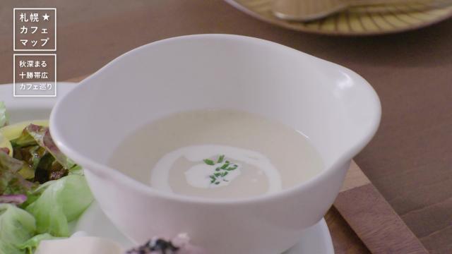 スープには地元農家から仕入れたジャガイモを使い、豆乳ベースで優しい味わいに仕上げています。