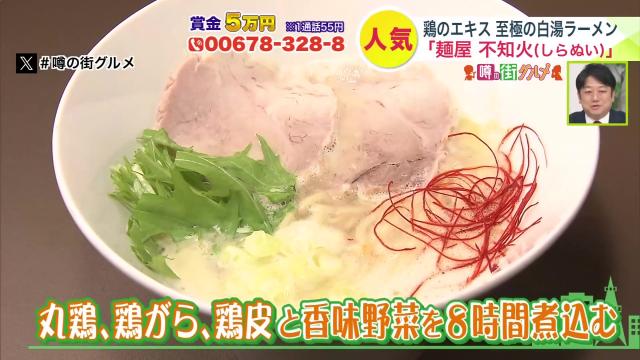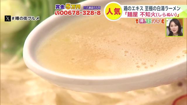 「麺屋 不知火(しらぬい)」は、濃厚ながらもあっさり味の鶏白湯(パイタン)スープが味わえる店。