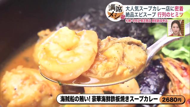 海外からのお客さんに人気なのが「海賊船の賄い!豪華海鮮鉄板焼きスープカレー 2,680円」。エビやホタテなど海の幸をふんだんに使った豪華な一皿です。