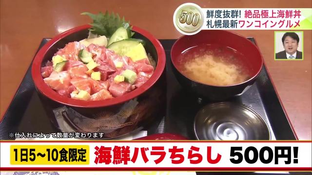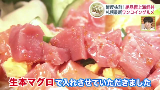 ワンコインで鮮度バツグンの生本マグロやサーモンが食べられる一杯なんです。※仕入れによって数量が変わります
