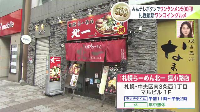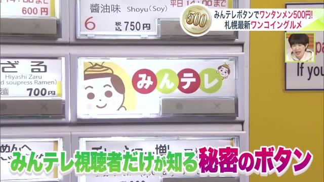 12月25日までの期間中は『みんテレ』の文字が入ったボタンを押すとワンコインでワンタンメンが食べられますよ。