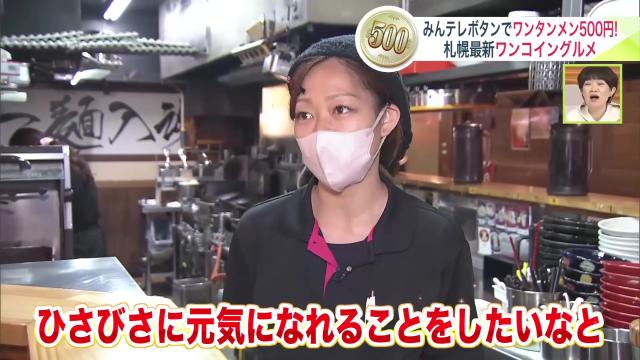 本来600円で提供している平日ランチ限定のワンタンメンですが「これもなにかのご縁なので」と、番組オファーをきっかけにワンコイン価格を企画してくださいました。