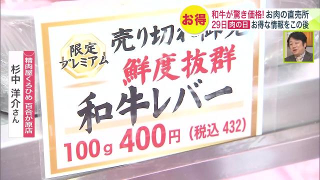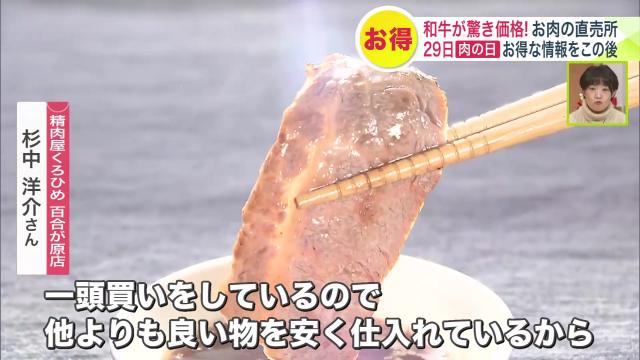 「霜降りは強いけど、さっぱりした味わいのある肉。一頭買いしているので、他よりも良い物を安く仕入れているから、この価格が実現している」と、杉中さんは話します。