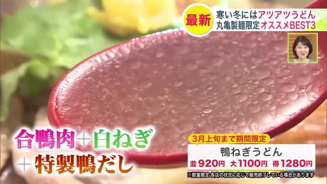 特製の鴨だしが打ち立てのモチモチ麺に染み込む、丸亀製麺の冬の定番商品です。