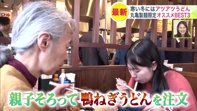 親子そろって鴨ねぎうどんを注文した2人は「冬になればやっぱり鴨ねぎうどん」「薬味がきいていて、体が温まる。肉がやわらかい。みなさんにオススメできる」と太鼓判。