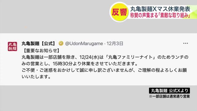クリスマスイブに従業員とその家族に温かい時間を過ごしてほしいという計らいなんだそうですよ。(※一部店舗は通常通り営業)