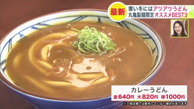 まずは、冬うどんの定番「カレーうどん」。一口スープを口にすれば、だしの香りをピリ辛スパイスが追いかけてくる、丸亀製麺自慢の一品。