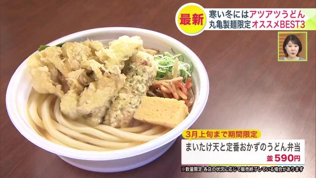 そして、持ち帰りのうどん弁当のおすすめが「まいたけ天と定番おかずのうどん弁当」。